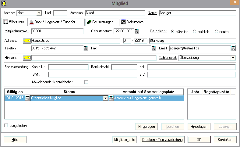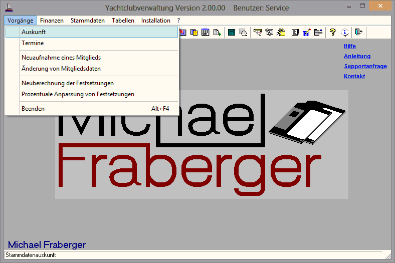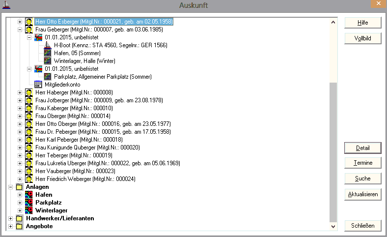 | Im folgenden Abschnitt möchten wir Ihnen an Hand einiger Beispiele die Benutzeroberfläche und den Funktionsumfang unseres Yachtclubverwaltungsprogramms illustrieren. Dies ist selbstverständlich nur ein kleiner Ausschnitt der Funktionen, die Ihnen unser Yachtclubverwaltungsprogramm bietet. |